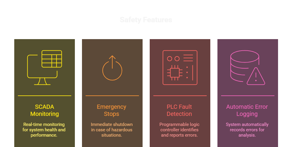 With SCADA-based monitoring, emergency stop controls, PLC-level fault detection, and automatic error logging, sorter systems enhance workplace safety and reduce the risk of manual handling incidents.