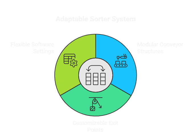 Sorter layouts can be tailored to operational needs — from small facilities to high-volume fulfillment centers. Modular conveyor structures, customizable exit points, and flexible software settings allow the system to grow with your business.