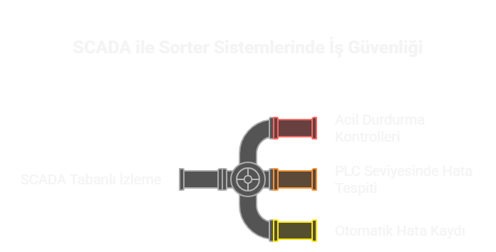 SCADA tabanlı izleme, acil durdurma kontrolleri, PLC seviyesinde hata tespiti ve otomatik hata kaydı sayesinde sorter sistemleri iş güvenliğini artırır ve manuel müdahalelerden kaynaklanan riskleri önemli ölçüde azaltır.