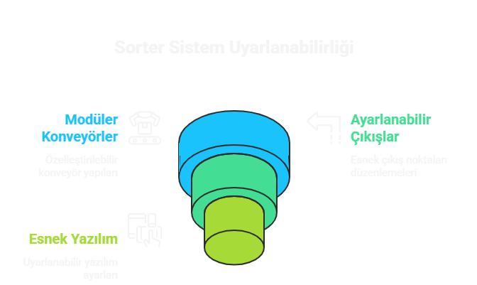 Sorter sistem yerleşimleri, küçük tesislerden yüksek hacimli dağıtım merkezlerine kadar farklı operasyonel ihtiyaçlara göre özelleştirilebilir. Modüler konveyör yapıları, isteğe göre düzenlenebilen çıkış noktaları ve esnek yazılım ayarları sayesinde sistem, işletmenizin büyümesine kolayca uyum sağlar.